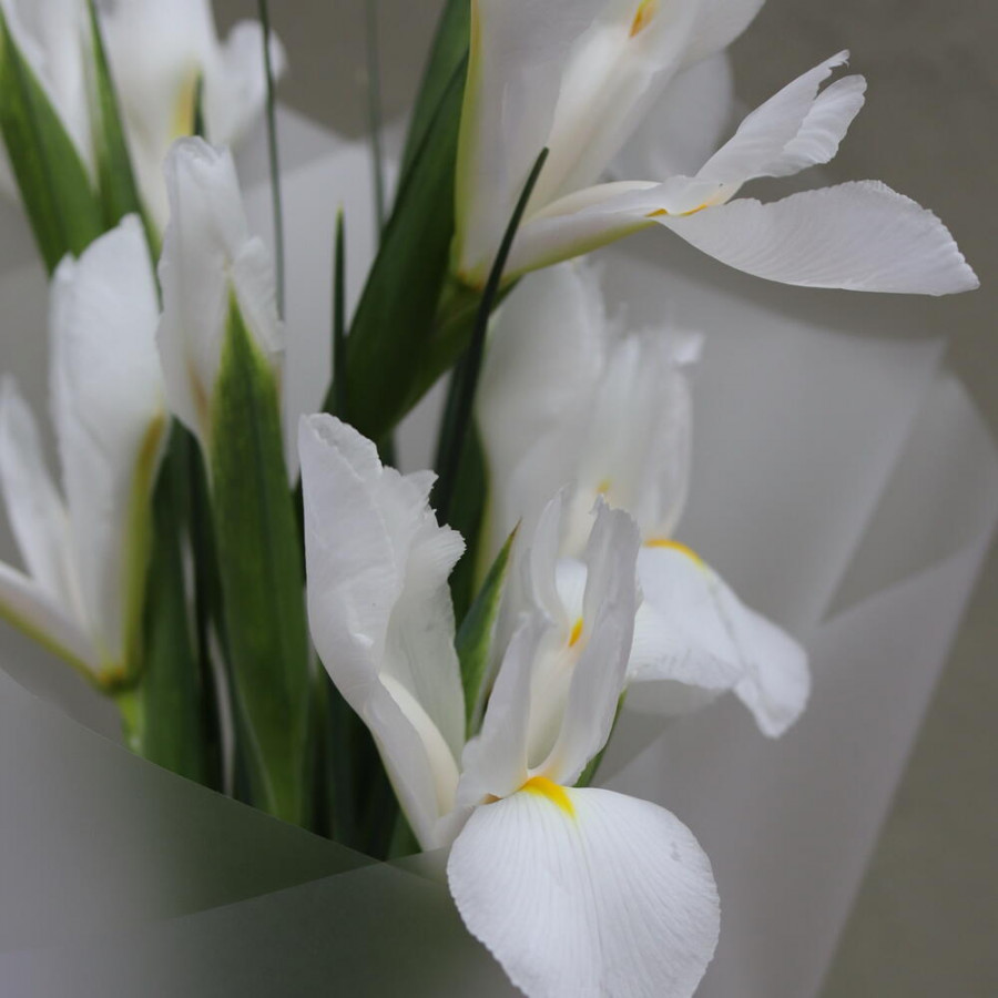 Букет 15 белых ирисов в стильной упаковке фото 4
