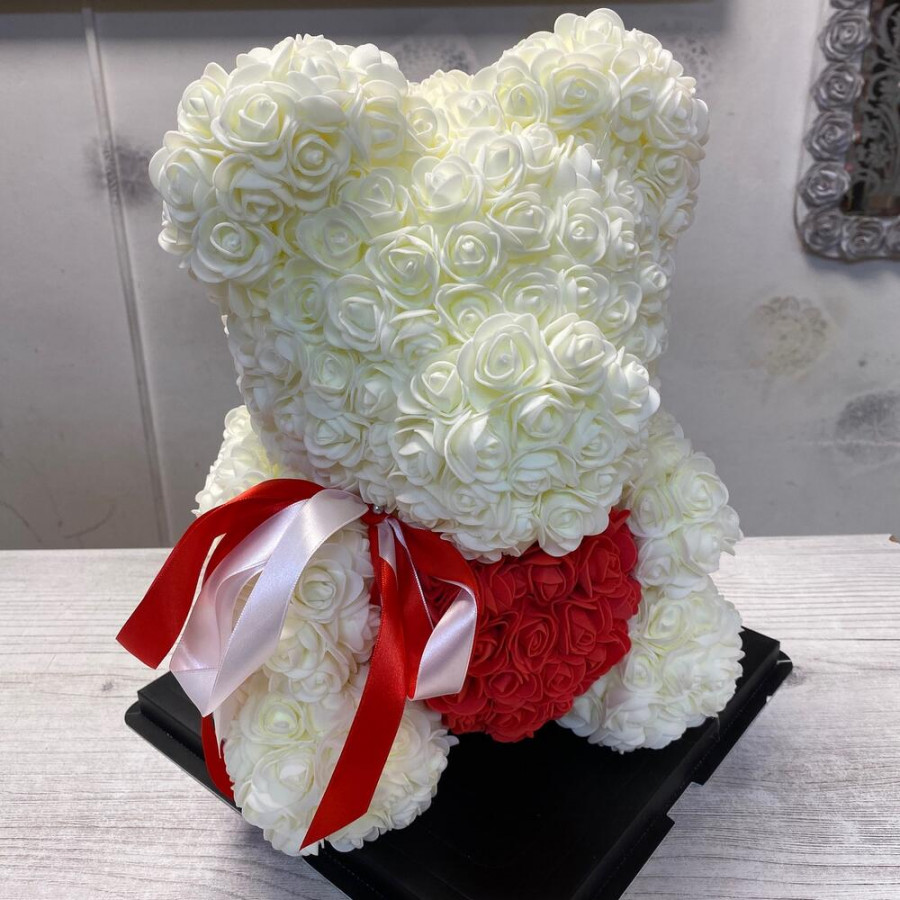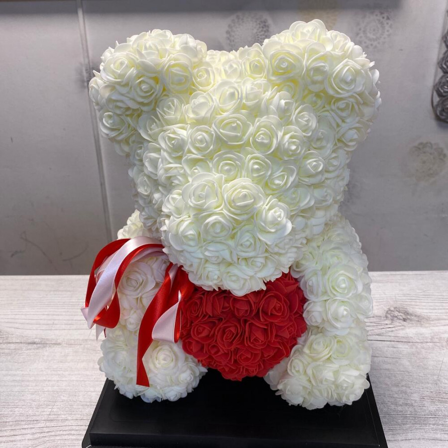 Мишка из роз белый