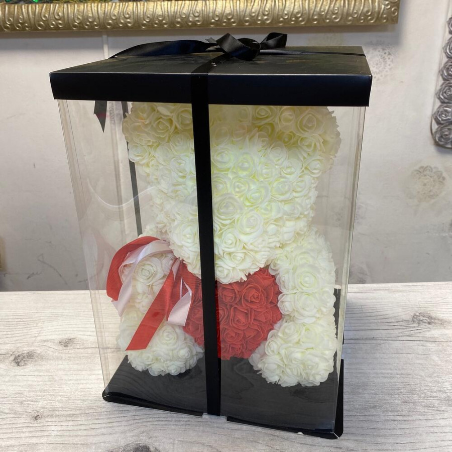 Большой мишка из белых роз 40 см