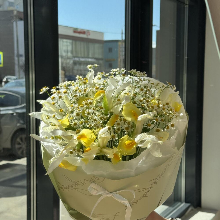 Букет из желтых ирисов и ромашек в Тамбове