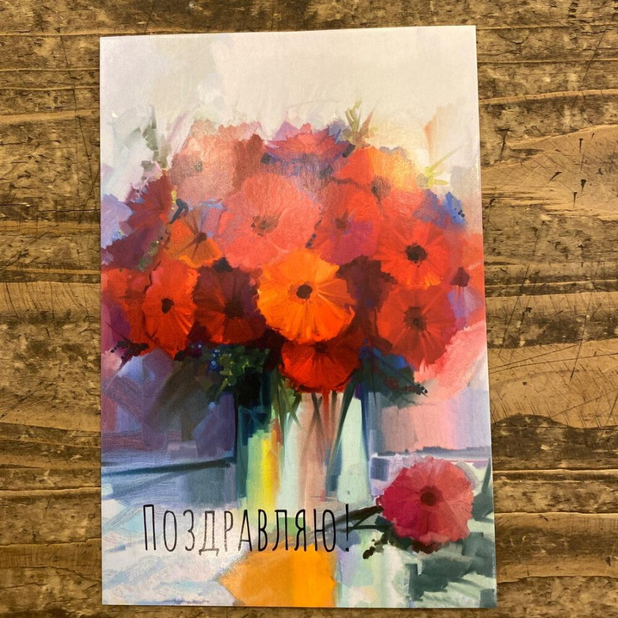 На фото открытка «поздравляю». В составе: . Все цветы свежие и ароматные, букет красиво оформлен и отлично подходит для подарка. Доступна доставка цветов или самовывоз.